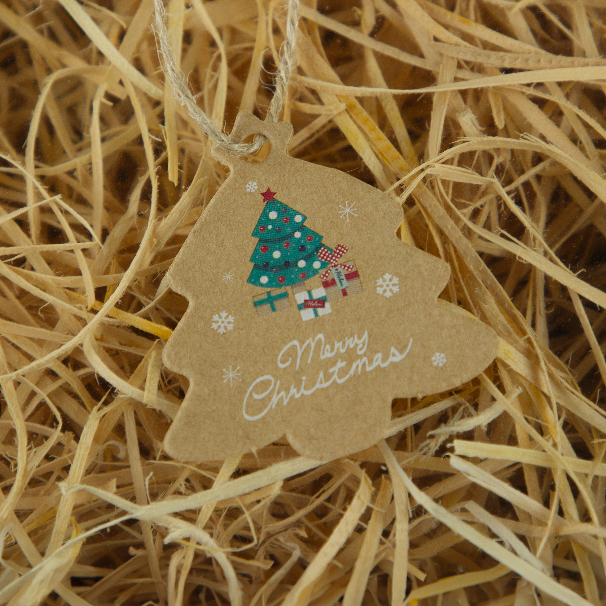| Nazwa artykułu | Zawieszki świąteczne w kształcie choinki ze sznurkiem, 55×45 mm, kraft, 48 szt |